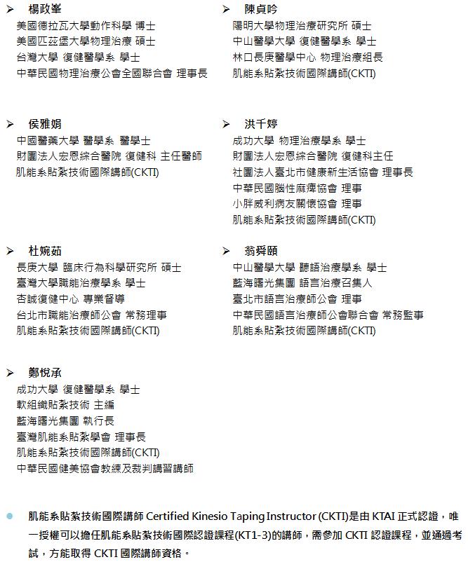 Course Completion)。完成認證課程後方可參加全球認證測驗,通過後由KTAI授予肌能系貼紮技術認證操作者(Certified