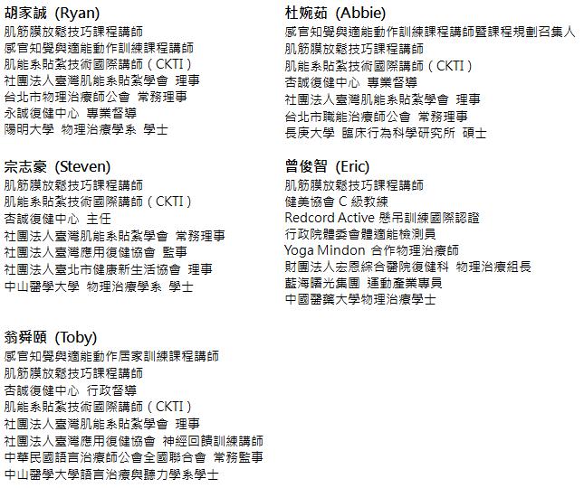 台灣復健醫學會 專業繼續教育積分 申請中 中華民國物理治療師公會全國聯合會 專業繼續教育積分 申請中 中華民國職能治療師公會全國聯合會 專業繼續教育積分 申請中 台灣聽力語言學會(語言治療師) 專業繼續教育積分 申請中