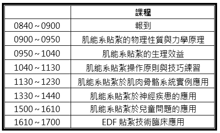 肌能系貼紮技術的概念應用,包含促進動作表現,感覺刺激的輸入,筋膜的引導與流動,肌肉或軟組織的支持、促進與放鬆,疼痛緩解,改善血液循環,減輕水腫,矯正姿勢,改善不良的動作型態等! 本課程將著重探討肌能系貼紮技術的基本原理、力學觀念與操作技巧,並分享臨床上不同案例的評估與介入,並就不同層面進行思考分析,讓大家對於貼紮技術有深入的認識和瞭解,並有大量的實際操作,同時提升臨床判斷與應用的實力,成為具有實務貼紮能力的專業執行者,融會貫通各式貼紮技巧,拓展治療新視野!