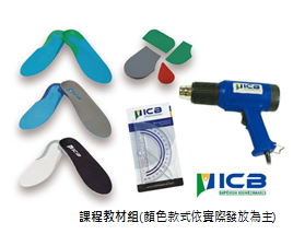 課程費用含教材組(ICB鞋墊三雙、熱烘槍、量角器、墊片組合包,市價總值7,340)。(若不需要熱烘槍者,可於報名時備註,可將熱烘槍更換為一雙鞋墊)。