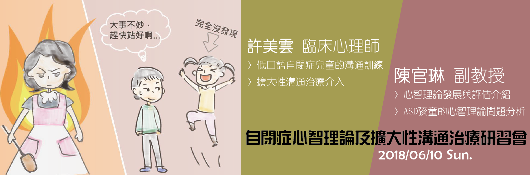 自閉症類群障礙症(autism spectrum disorder)兒童有顯著的人際互動及溝通困難,而這也是各類自閉症治療手法所希望能有所改善突破之處。而其中利用心智理論(theory of mind)來解釋自閉症兒童的社會行為發展,正逐步的擴充研究與應用。心智理論的發展可視為社會互動及人際溝通的先備能力。許多研究顯示自閉症類群障礙症兒童對於他人內心狀態或是對於假設情況的推論特別困難,因而造成人際互動時的誤解,難以發展良好的人際關係。我們邀請成大職能治療學系陳官琳副教授,分享心智理論的評估,並且進一步介紹自閉症孩童於心智理論的問題分析,藉此來提升我們對於自閉症類群障礙症兒童的評估與分析能力。